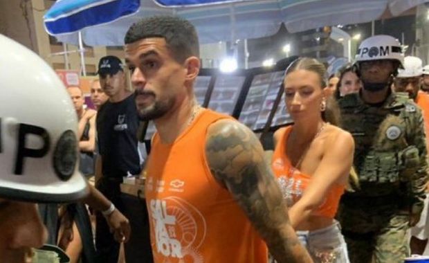 Everton Ribeiro, em seu primeiro carnaval como morador de Salvador, saiu no bloco “Me Abraça”, com sua esposa, e até subiu no trio de Durval Lelys.