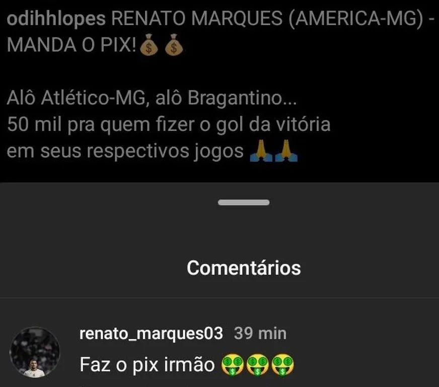 Dihh Lopes, por sinal, já prometeu Pix de R$ 50 para jogadores do Atlético-MG e do Bragantino seguindo as mesmas condições.