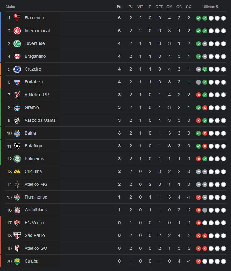 A segunda rodada o Brasileirão 2024 foi encerrada, ainda que com um jogo adiado, nessa última quinta-feira (18), com o jogo entre Botafogo e Atlético-GO.