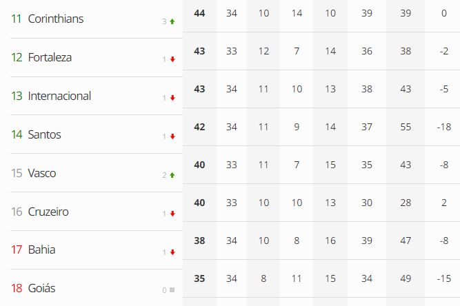 Caso Vasco ou Cruzeiro vença a partida, chegará aos 43 pontos e pulará para a 14ª posição, ficando perto de escapar definitivamente da queda de divisão.
