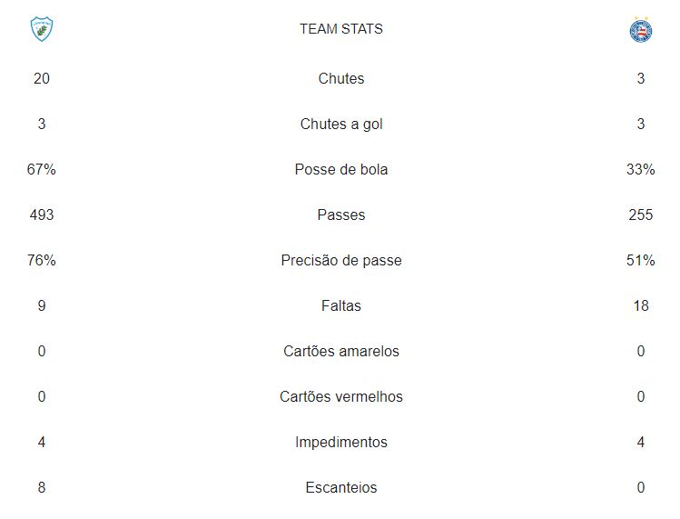 Mesmo com o número reduzido de 255 passes, o Bahia ainda errou 49% deles. E não teve sequer um escanteio para cobrar.