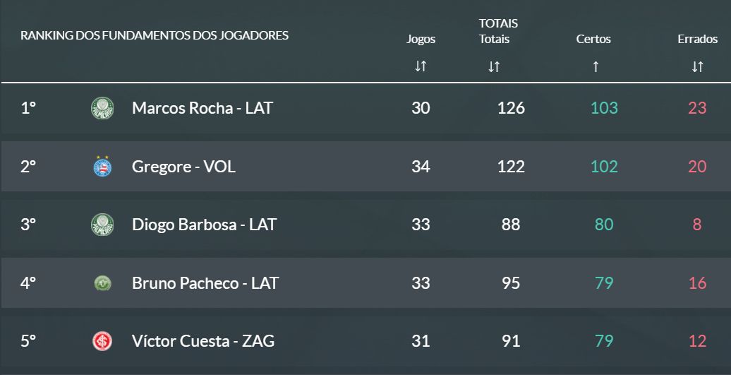 O camisa 26 ficou em quarto lugar no ranking dos jogadores que mais acertaram passes.