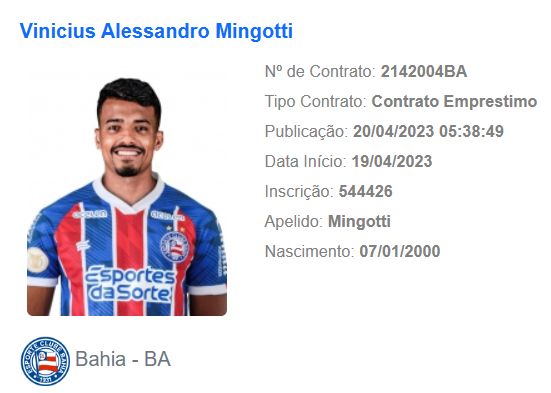 Atleta de 23 anos, Mingotti chega ao Bahia depois de ter atuado pelo Operário no primeiro trimestre, onde fez 13 jogos – sendo 12 deles pelo Paranaense e um na Copa do Brasil.