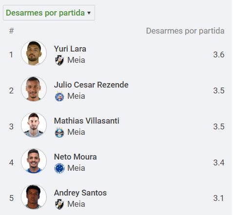 Ele só está atrás de Yuri, do Vasco, que tem uma média de 3,6 desarmes certos por partida – porém com quatro jogos inteiros a mais.