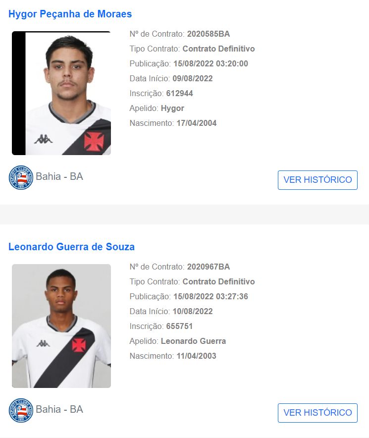 O zagueiro Hygor tem 18 anos e também atuou com a camisa do Vasco nas mesmas competições nesta temporada.
