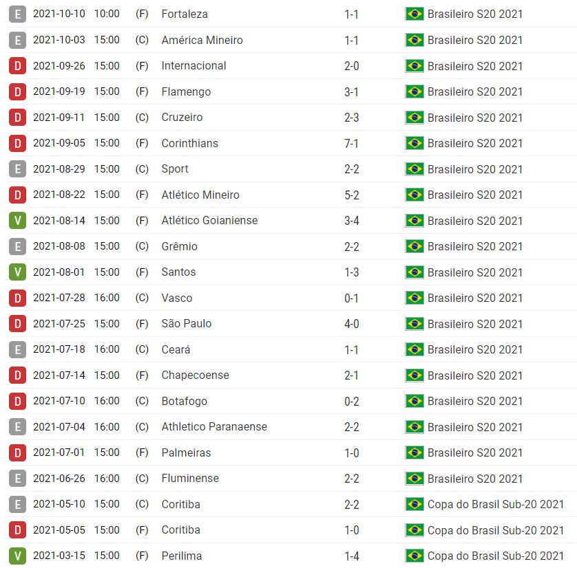 Já no Brasileirão 2021, o sub-20 terminou em 19º lugar em uma edição de 20 times em pontos corridos.