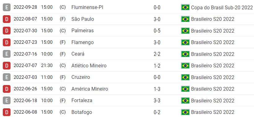 Já em 2022, o número de jogos foi menor devido a uma redução no número de partidas na primeira fase do Brasileiro. Foram cinco jogos neste ano, com quatro derrotas e um empate.