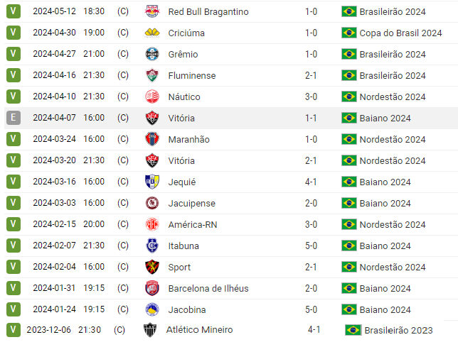 Contabilizando também o final da temporada de 2023, o Esquadrão acumula um total de 16 partidas sem perder na Arena Fonte Nova com a equipe profissional em campo, sendo 15 triunfos.