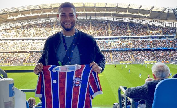 Um dia após vencer luta na Inglaterra, o embaixador tricolor, Hebert Conceição, representou a torcida do Bahia em um jogo do Manchester City, no Etihad Stadium, pela Premier League.