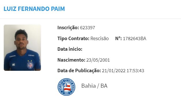 Pouco conhecido entre os torcedores tricolores, o zagueiro Luiz Paim teve seu contrato rescindido com o Bahia nesta última sexta-feira (21). Acertado com o Juventus-SC para a temporada, o defensor deixou o clube de forma definitiva após uma passagem discreta em 2021.