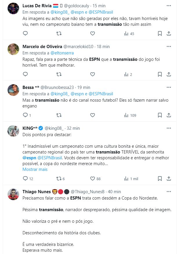 Se Bahia e Sport são rivais em campo, tricolores e rubro-negros se juntaram em críticas direcionadas à transmissão da ESPN.