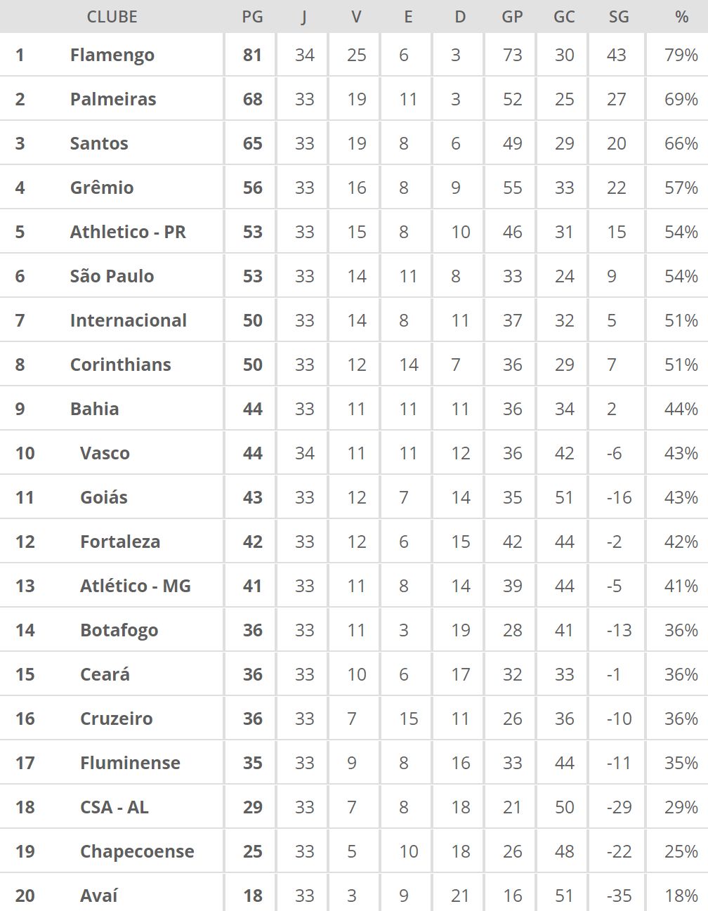 Classificação do Brasileiro