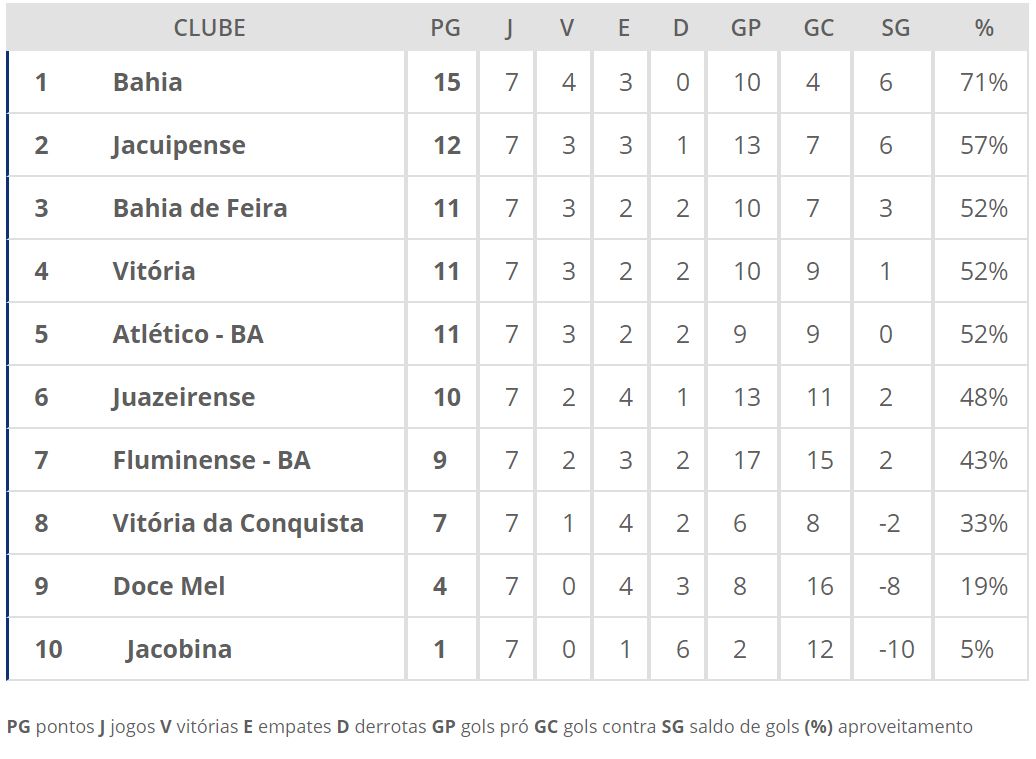 Veja como está a classificação do Baianão após sete rodadas: