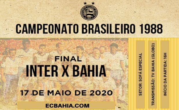 Na tarde desse domingo (17), a TV Bahia vai retransmitir a partida que garantiu o segundo título brasileiro para o Esquadrão de Aço, contra o Internacional, na edição de 1988 do Brasileirão.