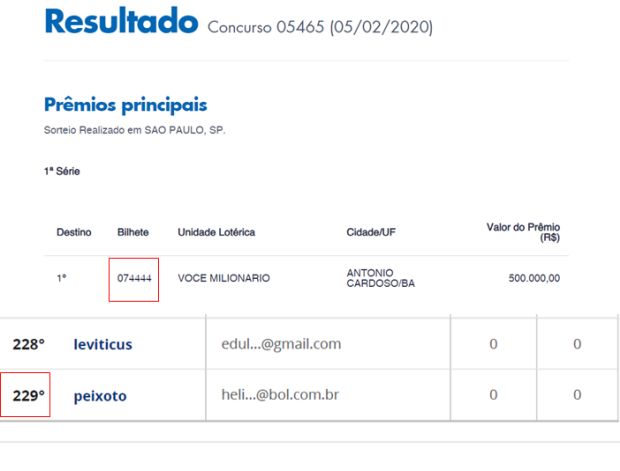 Após o final da segunda rodada da Copa do Nordeste, na segunda 03/02 pela manhã pegamos o ranking do bolão. A posição de cada participante significa um número. Naquele dia tínhamos 229 participantes. Os três últimos dígitos do primeiro prêmio da loteria federal do dia 05/02 determinaram o vencedor.