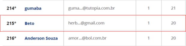 Como o número sorteado foi 444, o participante posicionado na posição 215 no ranking foi o vencedor. Já entramos em contato com Herbert, vencedor dessa promoção.